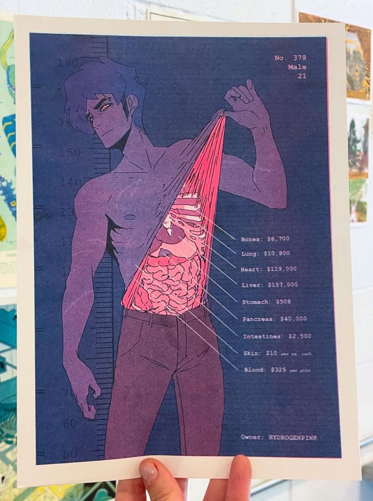 A4 Risograph print on text weight french paper. 3 color of Bubblegum, Medium Blue, Black