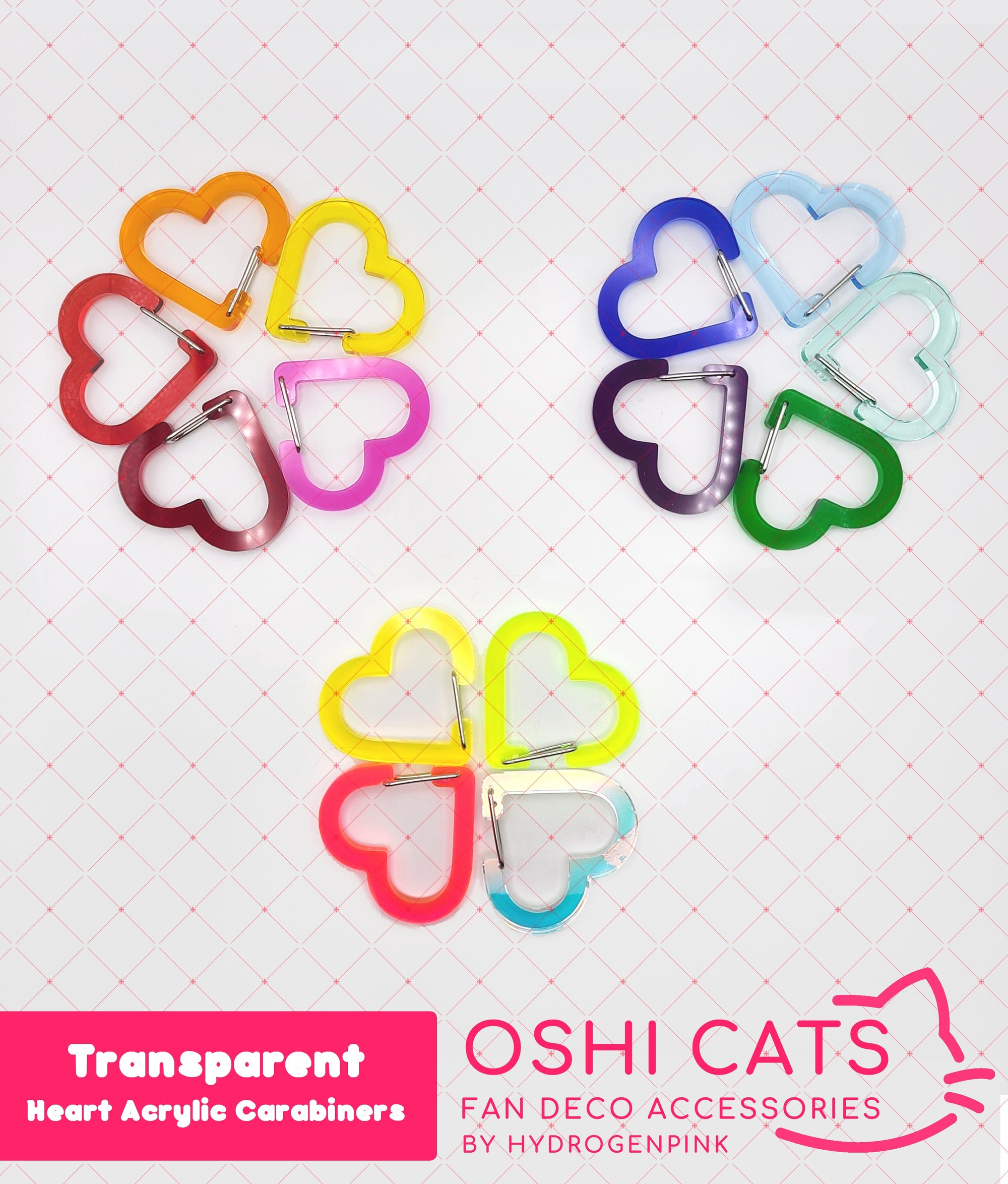 Original product name: Transparent Heart Acrylic Carabiners ( Perfect for K-pop polca, Oshi, Itabags) -buy 4 get 1 free (random)-